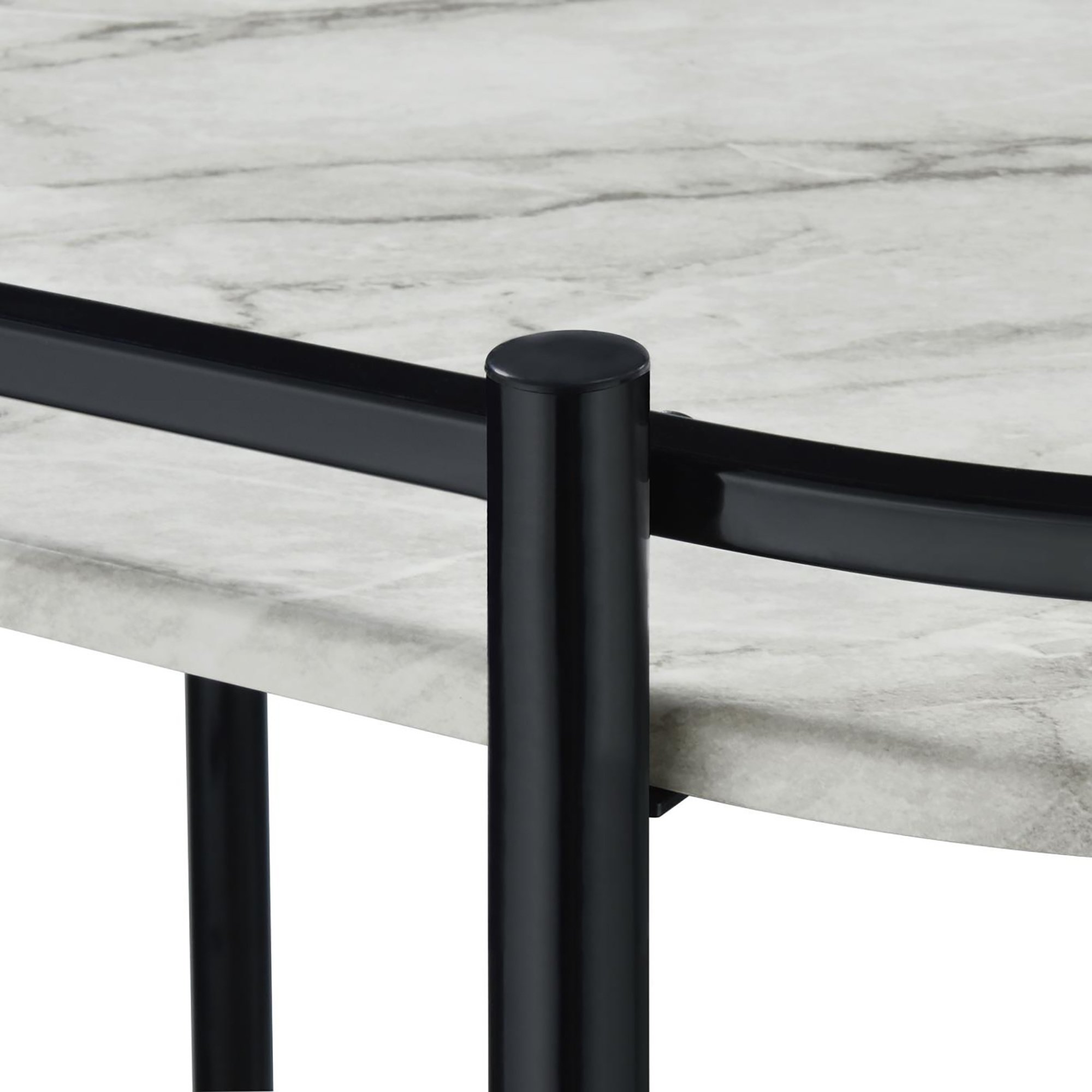 The classic faux white marble shelves stacked atop one another bring a touch of traditional elegance to the cart's sleek and modern silhouette, combining timeless aesthetics with contemporary design